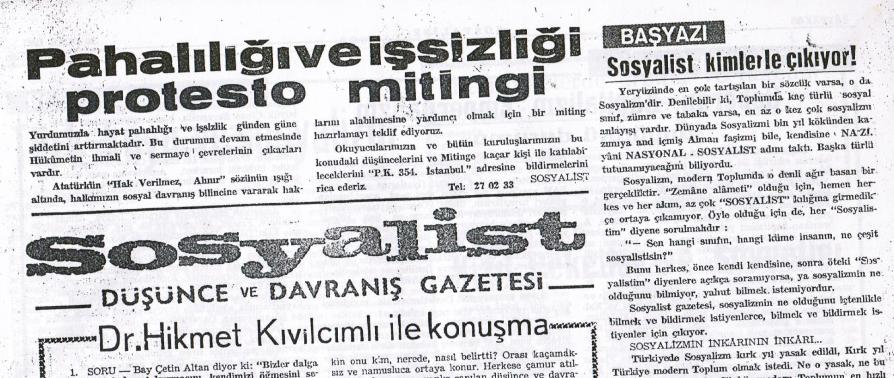 Okuyucularımızın ve bütün kuruluşlarımızın bu konudaki düşüncelerini ve Mitinge kaçar kişi ile katılabileceklerini “P.K. 354. İstanbul.’’ adresine bildirmelerini rica ederiz.